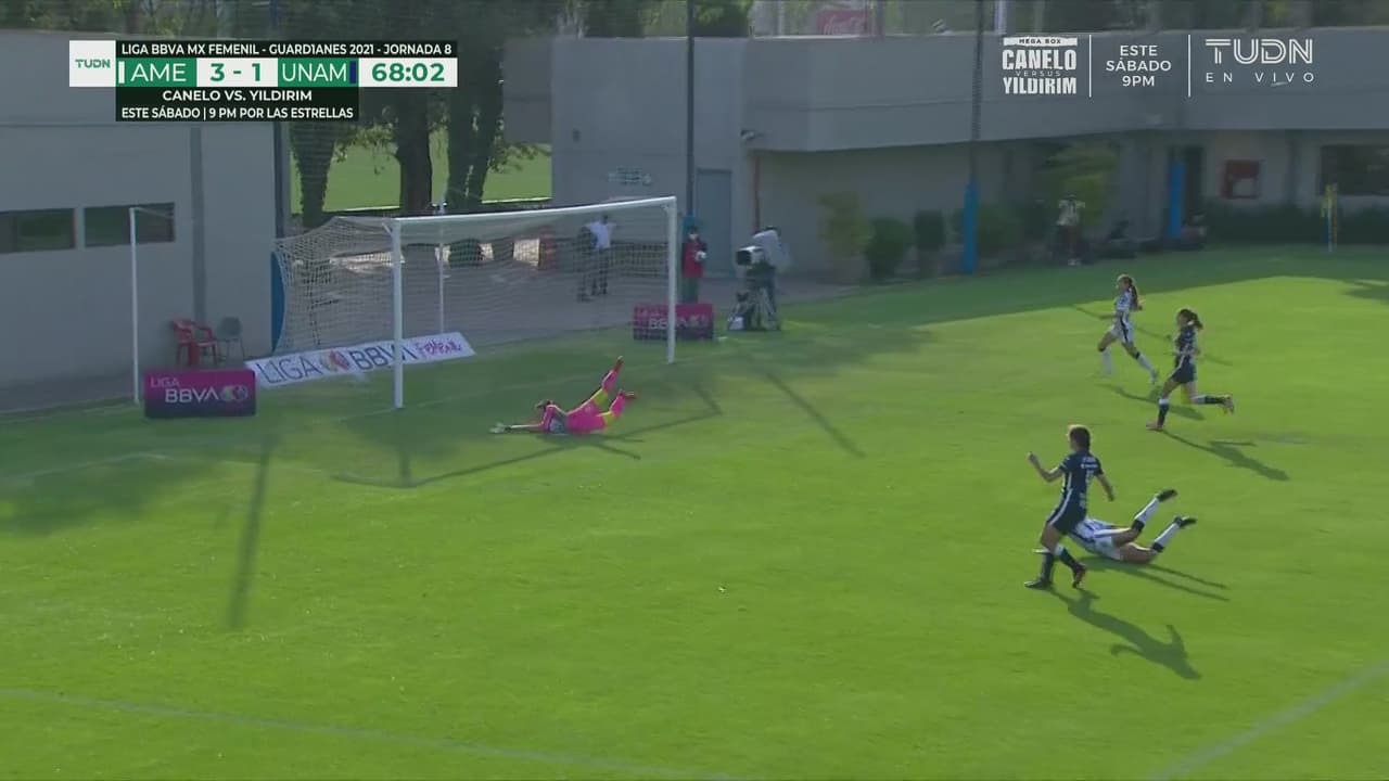 El desorden de la zaga universitaria permitió que al 67', Montserrat Hernández condujera el balón hasta el área y tras quitarse a tres defensas remató pegado al poste para el 3-1.