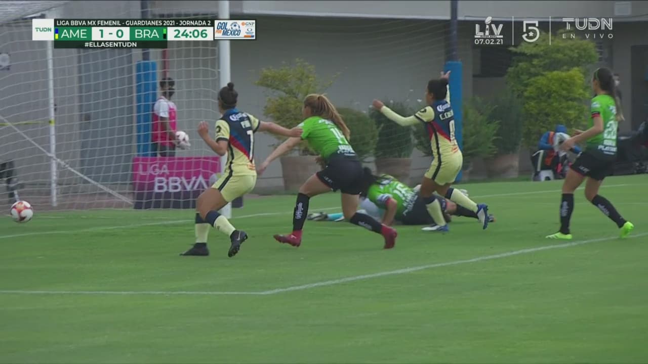 América logró su primer triunfo del Guard1anes 2021 BBVA MX de la Liga BBVA MX Femenil con un golazo de Eva González Tate.