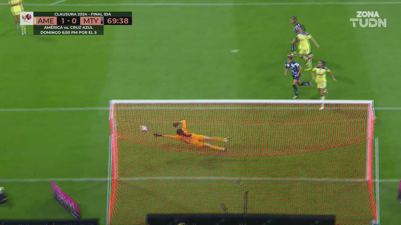 Antes de la media hora del partido, Kiana Palacios recortó, dribló, rebotó la pelota y remató a puerta pero Pamela Tajonar detuvo a dos manos con un lance espectacular en lo que era el primer aviso tanto de las Águilas como de la capitana del equipo.