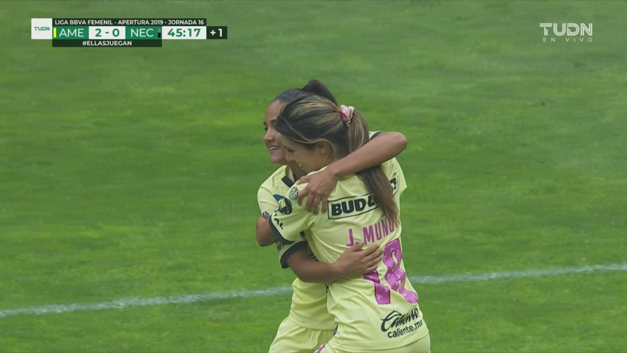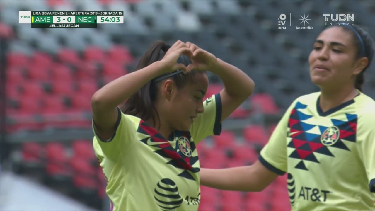 El primer gol se dio al minuto 8 luego de un contragolpe que inició Alondra González para filtrar a Daniela Espinosa quien a velocidad se escapó de la zaga del Necaxa para quedar frente a Balbina Treviño, rematar pegado a su poste izquierdo y abrir el marcador en el Estadio Azteca.