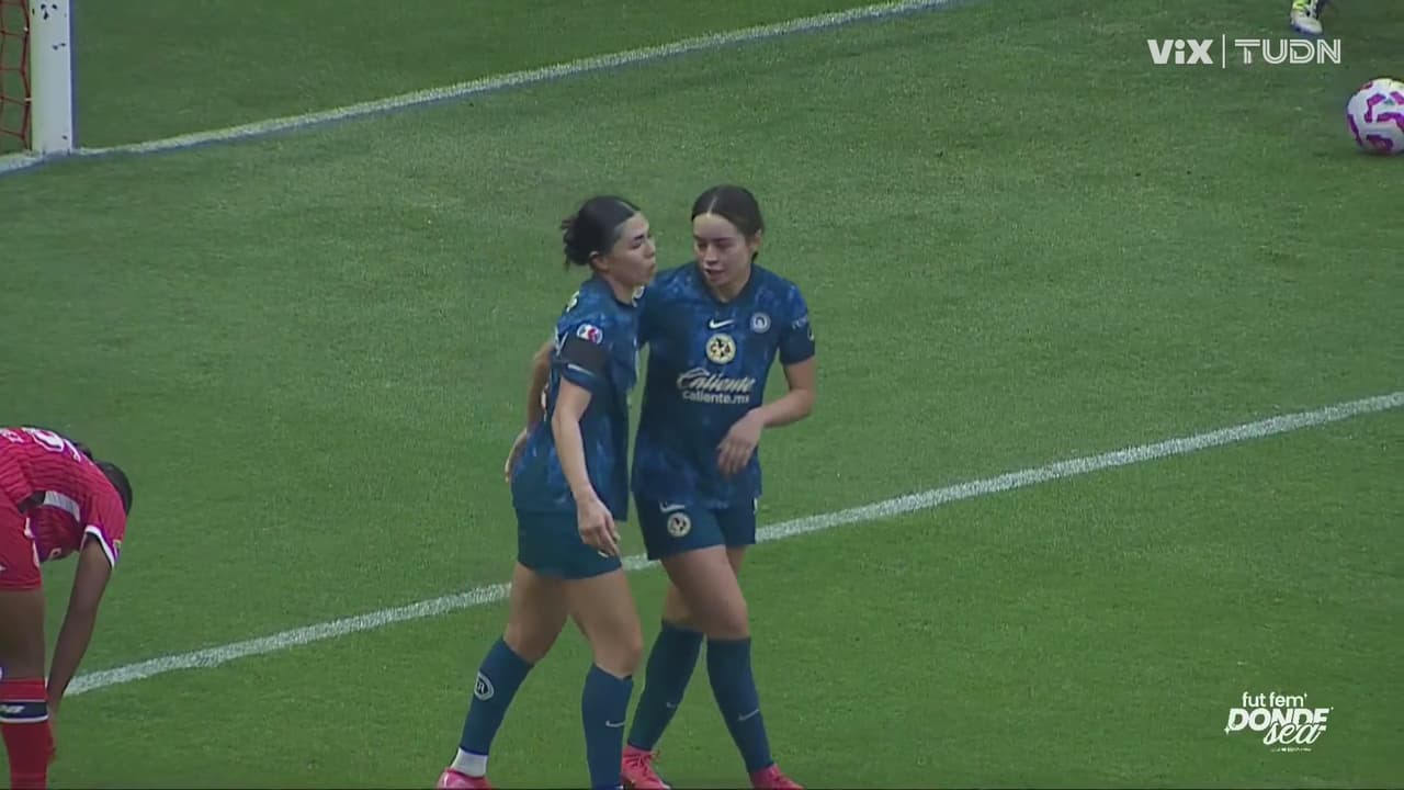 Antes de que concluya el primer tiempo, tras una serie de toques el jugadora de las Águilas se adelanta a su marca y fusila a Kayla Thompson.