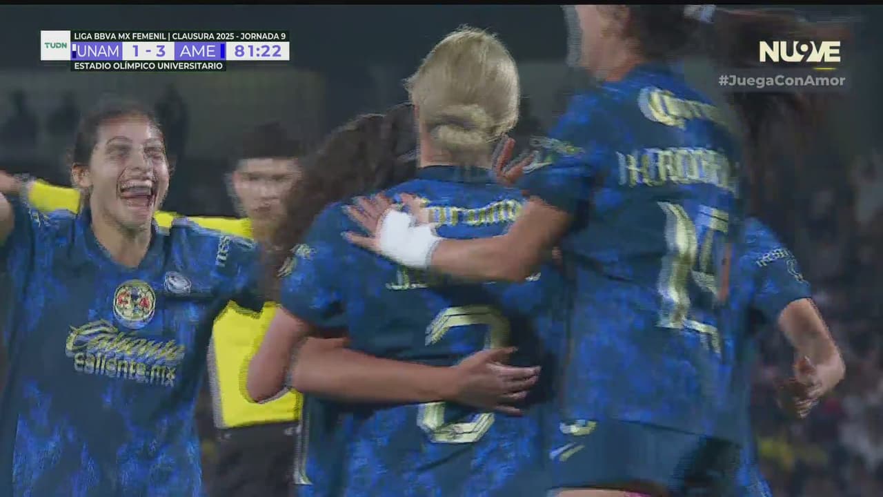 En cobro de tiro indirecto y tras el rechace le queda el balón a modo a Jocelyn, quien impacta con potencia para el 3-1 a favor de las Águilas.