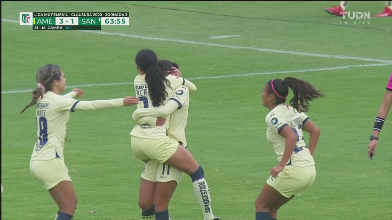 América sufrió para obtener el triunfo en casa ante una combativo Santos Laguna durante la Jornada 3 de la Liga MX Femenil.