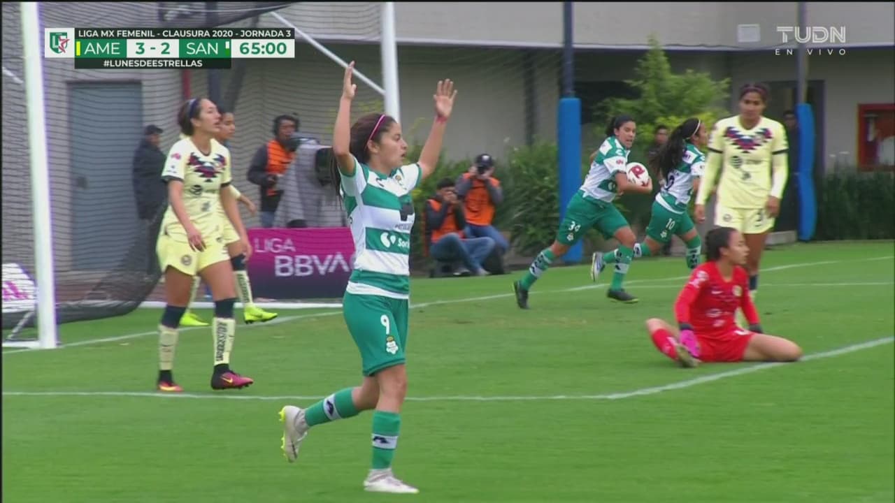 Santos no bajó los brazos y puso a América a defender. los cambios de Leonardo Cuéllar fueron defensivos debido al atrevimiento y potencia del conjunto coahuilense. Andrea Hernández puso el 3-2 definitivo cuando el juego agonizaba pero al final no alcanzó.