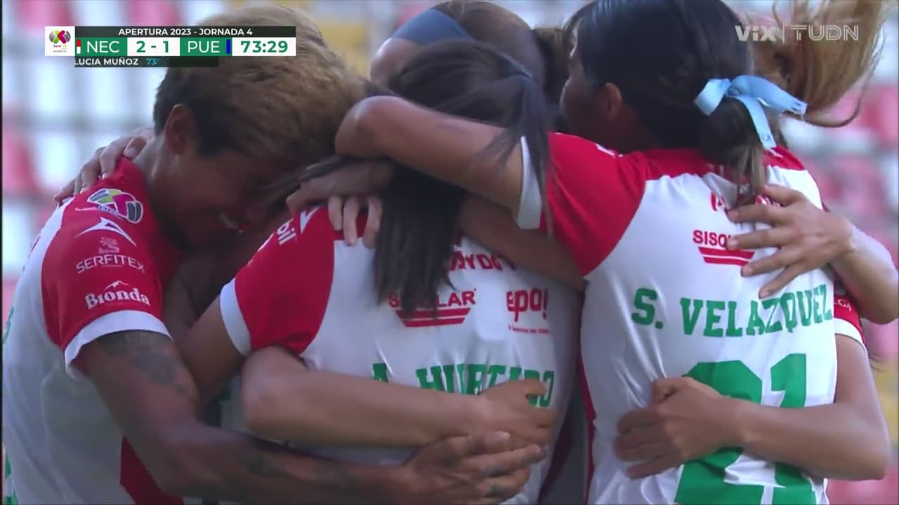 Aisha Solórzano se distare en el área, regala el penal y la capitana de Necaxa le regresa la ventaja a las Centelleas.