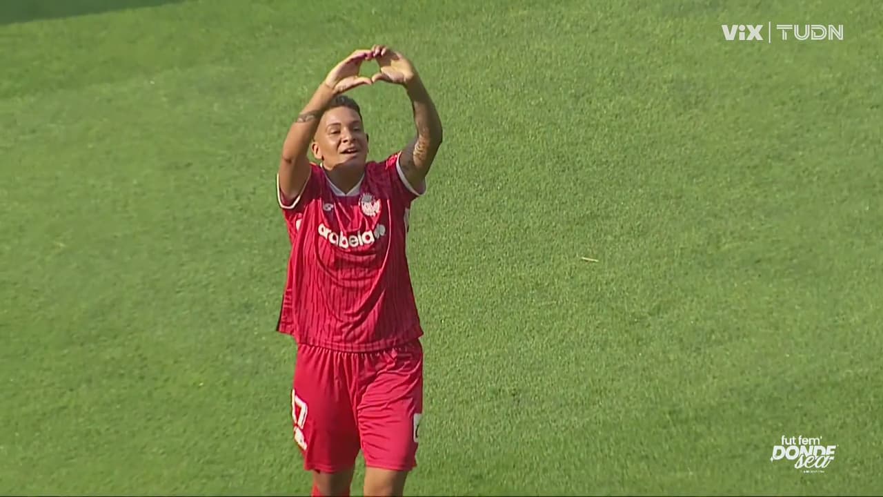 La jugadora del Toluca se escapa por toda la pradera de la derecha y por más que la guardameta intenta nulificarla, la acción termina con el 2-0.