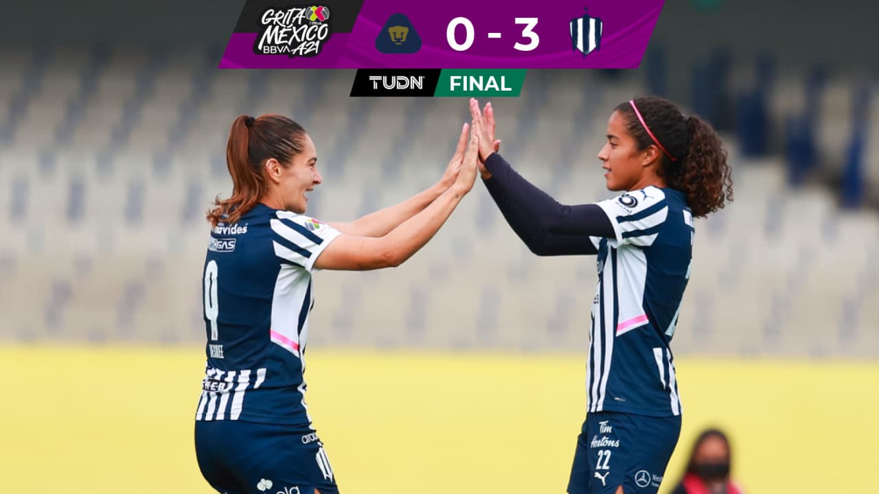 ¡'Asaltaron' CU! Monterrey femenil vence 3-0 a Pumas en Jornada 3