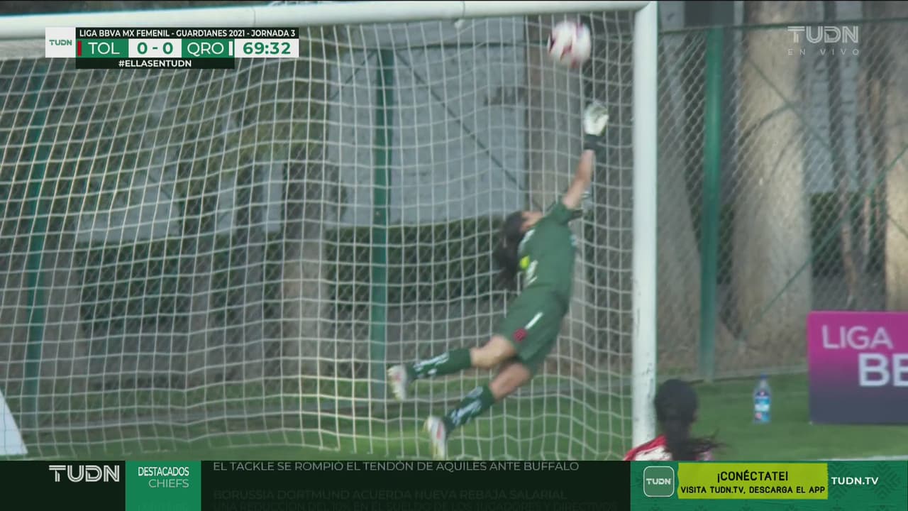 La jugadora de Querétaro tomó un rebote y prendió el esférico, pero la portera del Toluca se lució al 68’.