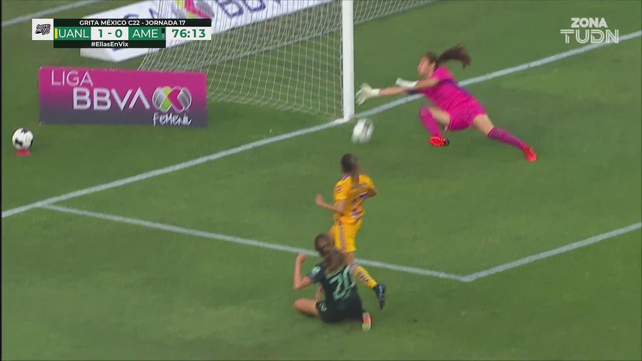 La portera de Tigres evitó el empate de América con el manotazo a primer poste al 75’.