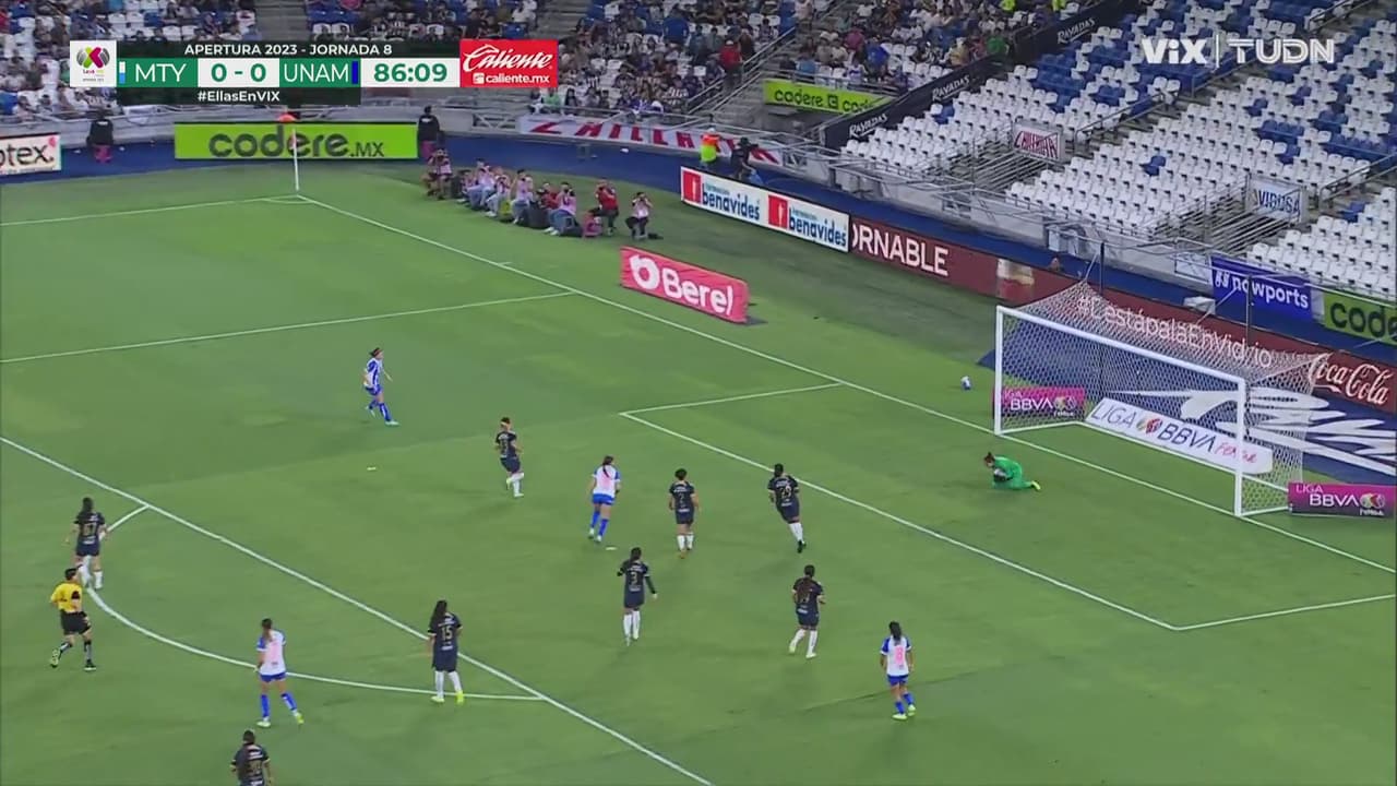 La guardameta de Pumas pudo quedarse con la esférica y evitar la caída de su marco tras el remate de Myra.