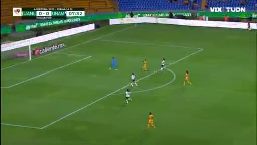 Balonazo de Tigres buscando sorprender a la defensiva de Pumas, pero la guardameta se quedó con el balón.