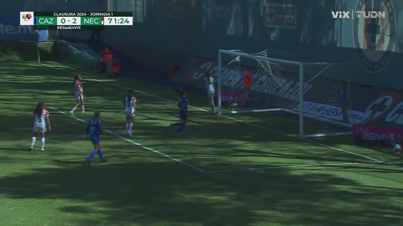 Potente remate hizo Ximena buscando acortar distancias para las celestes, pero el balón se negó a entrar, perdonando a Centellas.