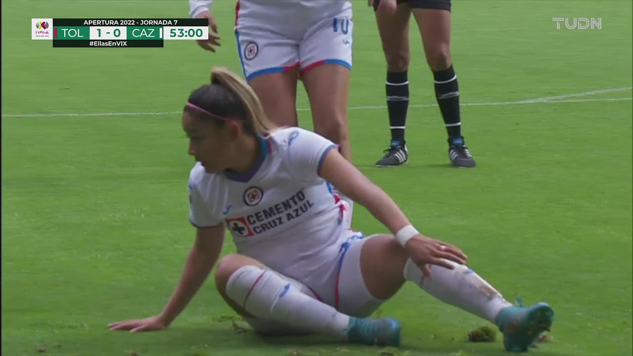 Renata roba el balón y se aproxima con peligro al área escarlata, pero llegó Noemí para apagar el peligro.