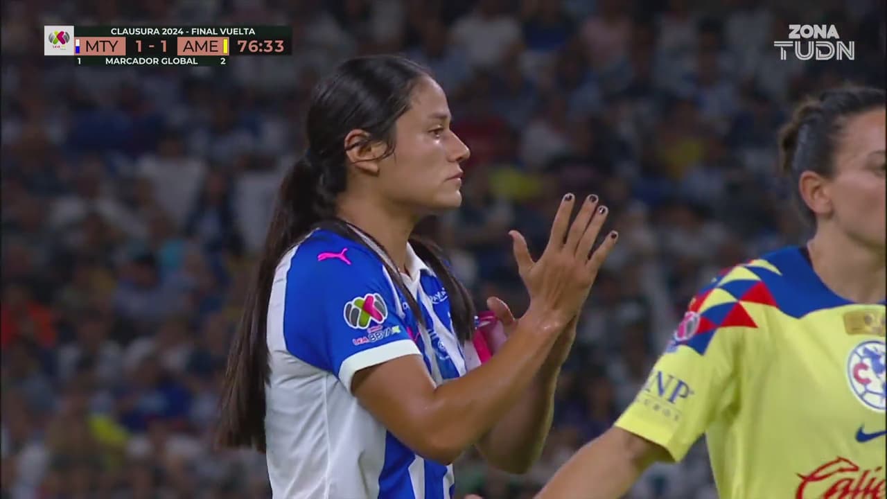 La capitana de Rayadas probó de larga distancia y con el desvío, Velasco llegó a tocar el balón.