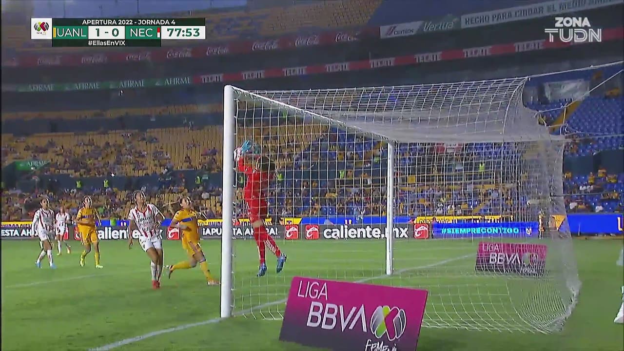 La jugadora de Tigres mandó un servicio por izquierda que casi se mete a la portería de las Centellas al 78’.