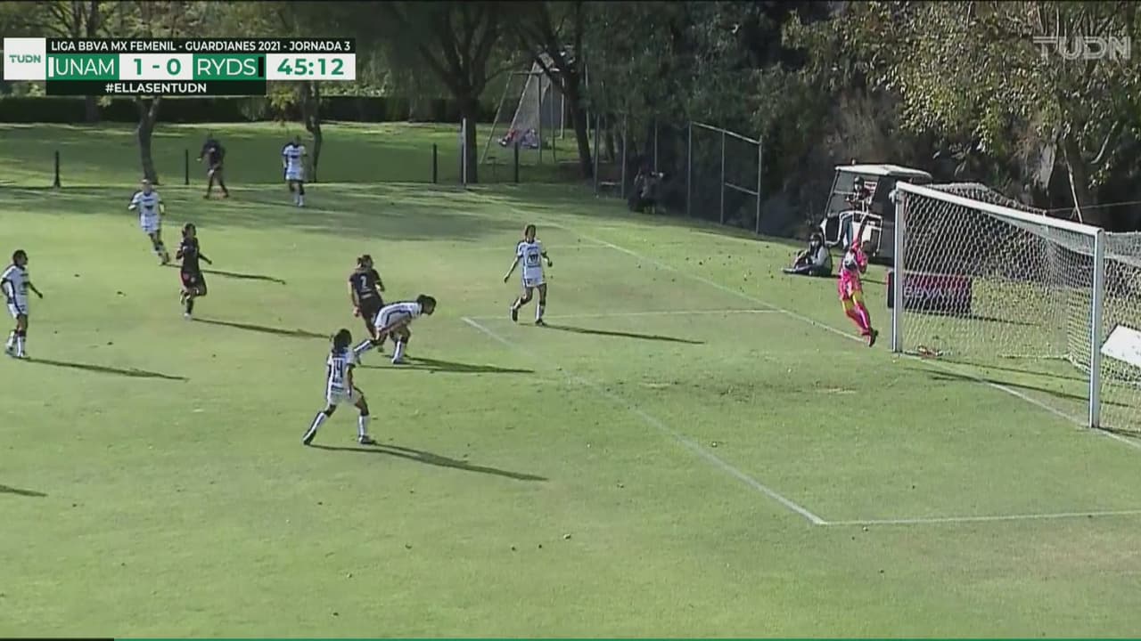 La delantera de Rayadas ganó por arriba, pero el balón fue directo al travesaño al 44’.