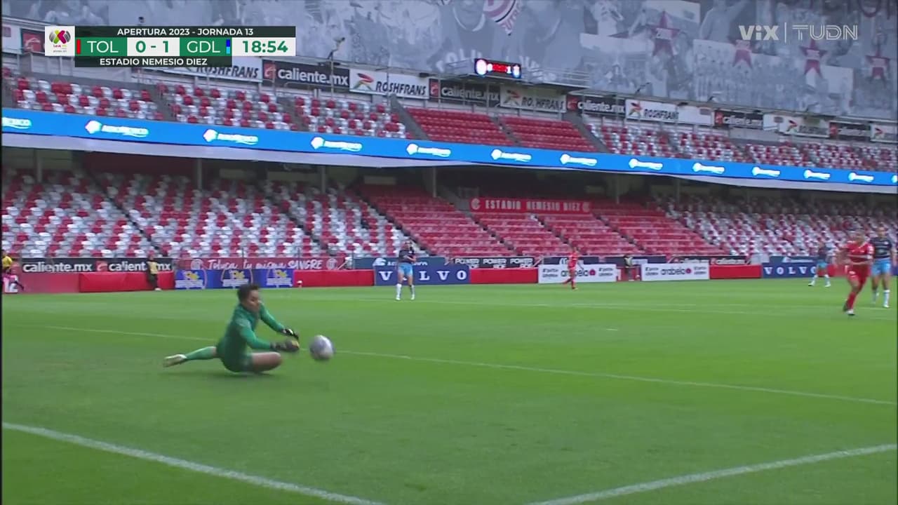 Disparo potente de larga distancia por parte de Gómez Junco donde la portera de Chivas quiso quedarse con la bola.