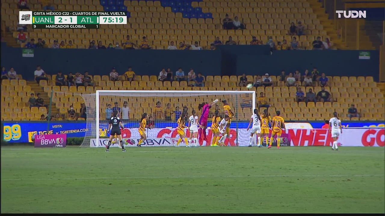 La jugadora del Atlas cobró por derecha a perfil cambiado y el esférico retumbó en el larguero al 75’.