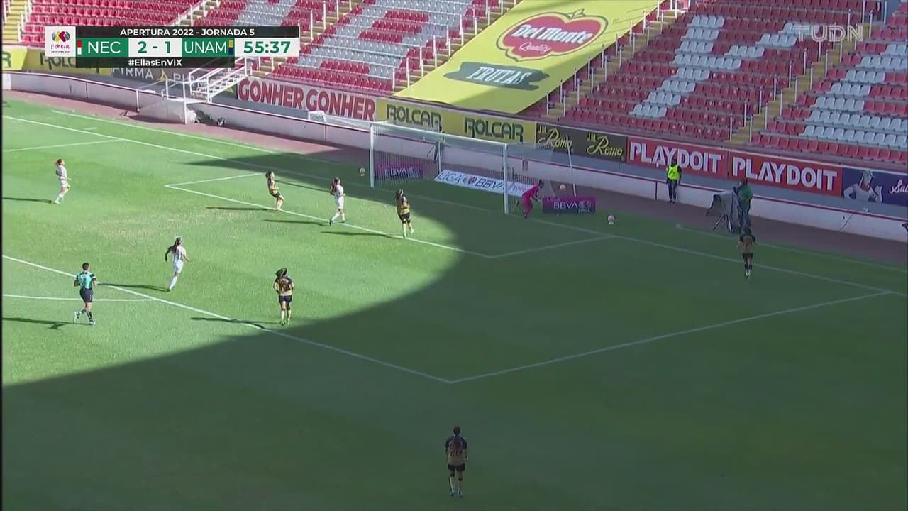 La delantera del Necaxa sacó un centro desde la banda que se fue cerrando y por poco anota al 55’.