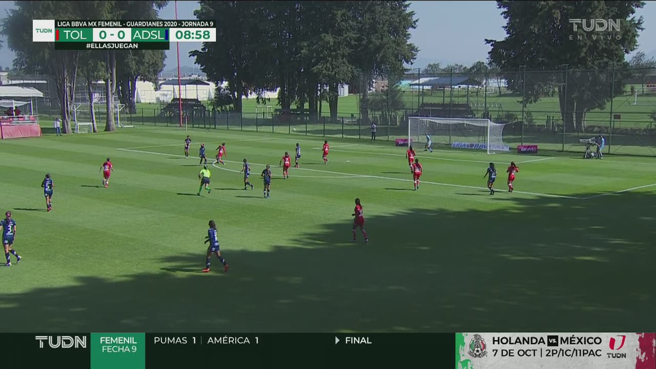 La defensa de Toluca no pudo despejar el balón y la mediocampista sacó el disparo.