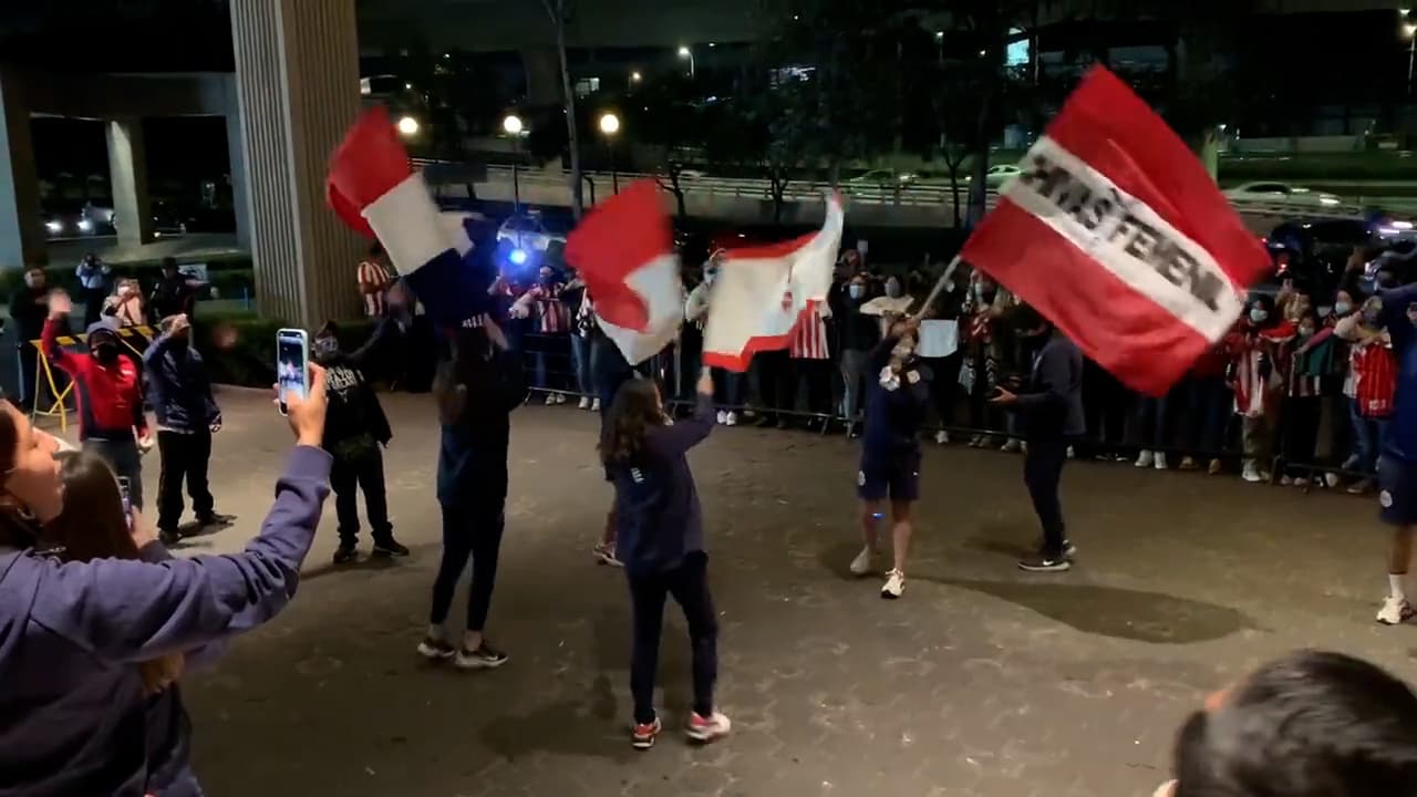Decenas de aficionados rojiblancos acudieron al hotel de las jugadoras para alentarlas de cara al partido de ida en el Estadio Azteca.