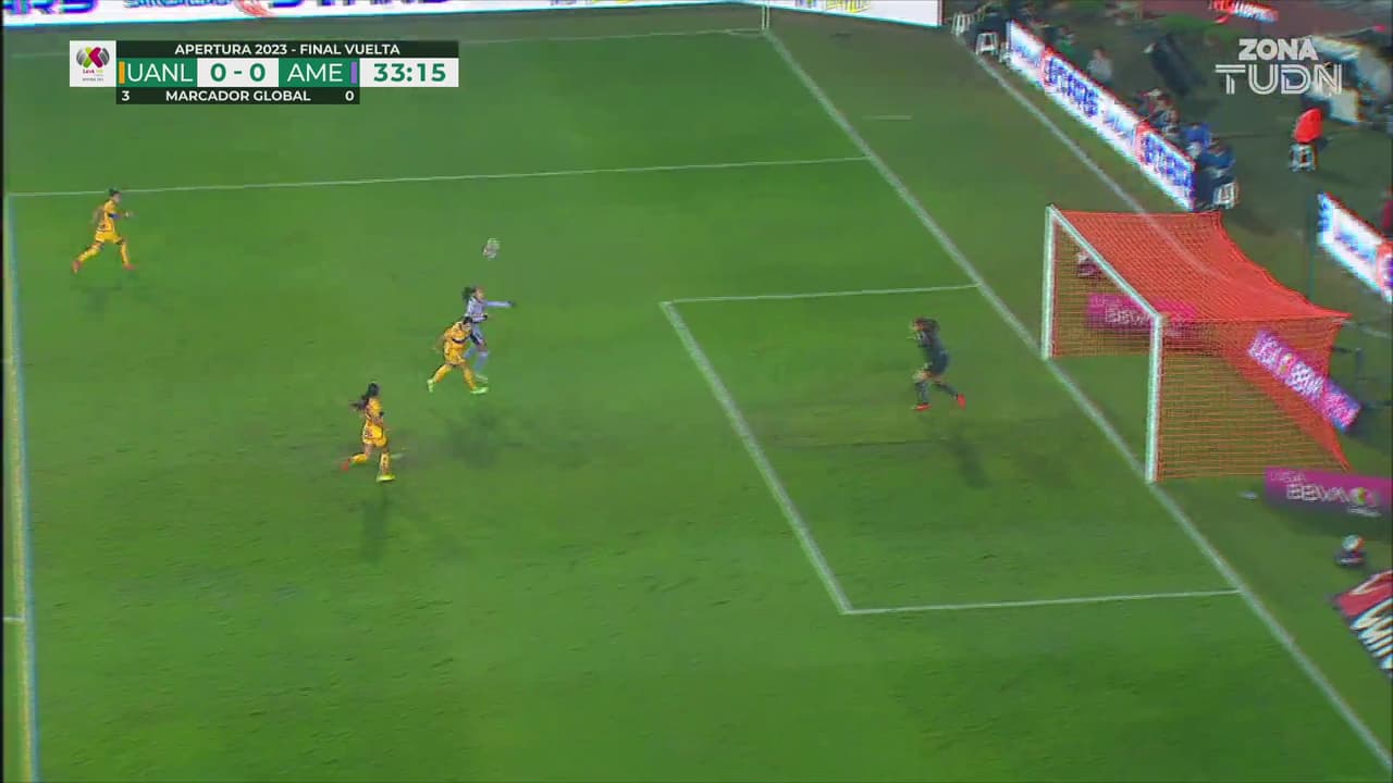 ‘Aligol’ González buscaba rematar tras pase de ‘Katty-killer’ para marcar, pero la número 22 de las Amazonas se le atravesó.