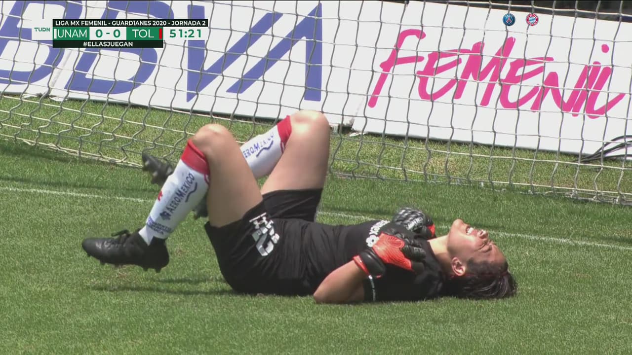 Intentaron sorprender a la portera de larga distancia y con una magnífica reacción y con un poco de suerte evita la anotación.