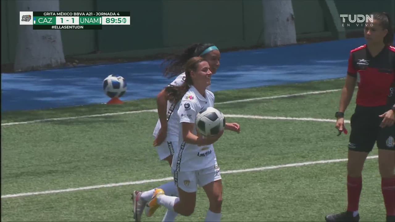 Cerca del final, una jugada por izquierda en el contragolpe de Pumas tuvo su fruto, cuando llegó Natalia Macías para soltar el zapatazo cruzado para empatar el partido.