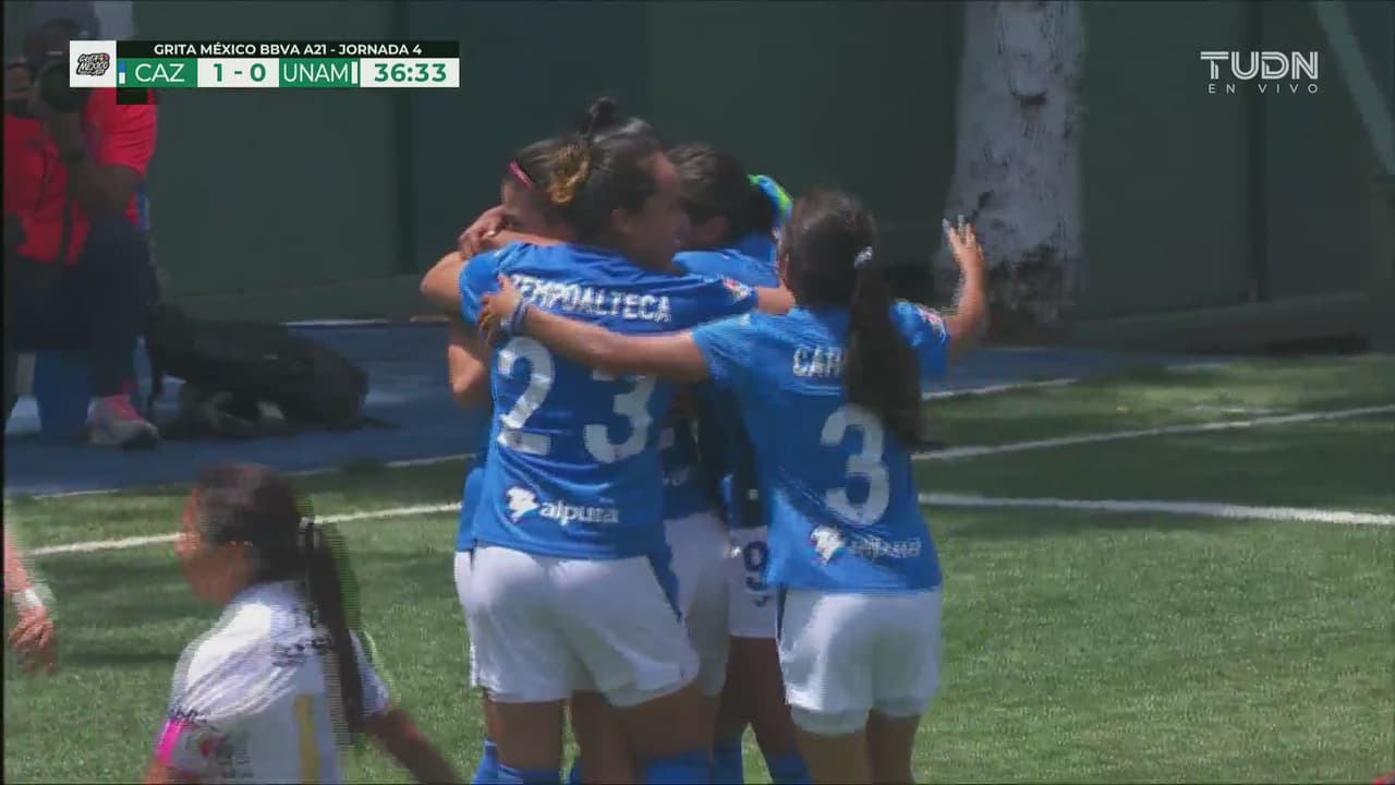 El primero llegó para las locales y fue en el tiro de esquina que se jugó cortito, luego el centro y así le llegó el balón a Claudia Cid quien dando dos pasos para atrás se quitó la marca, se levantó con un salto y de cabeza la mandó a dormir, justo cuando mejor estaba jugando mejor Pumas.