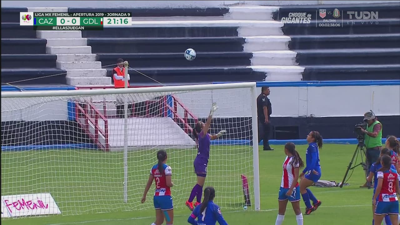 Martha Enciso remata directo y el balón pasa a centímetros del arco.