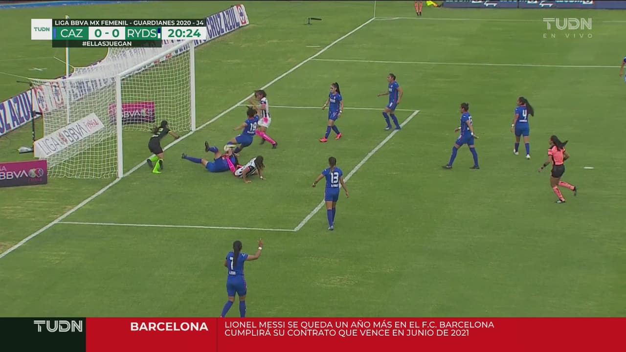 La defensa del Cruz Azul despejó una pelota al borde de la línea del arco, evitando que Diana García definiera.