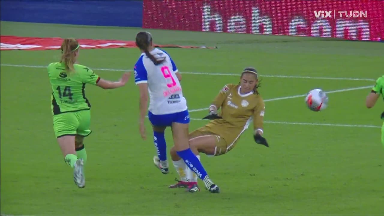En la carrera por la esférica y cantar un gol más, Myra remató pero Paola González le metió el pie para alejarlo.