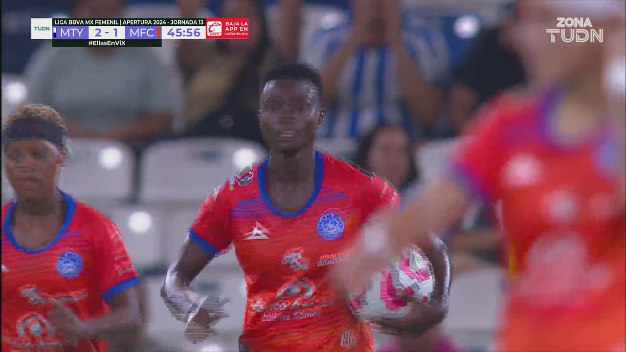 El trallazo de Olga Massombo lo dejó la portera de Rayadas en el área y Lunyamila anotó.