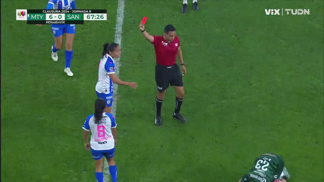 La defensora de Rayadas metió una dura patada sobre Ramírez, el árbitro no lo pensó y la expulsó.