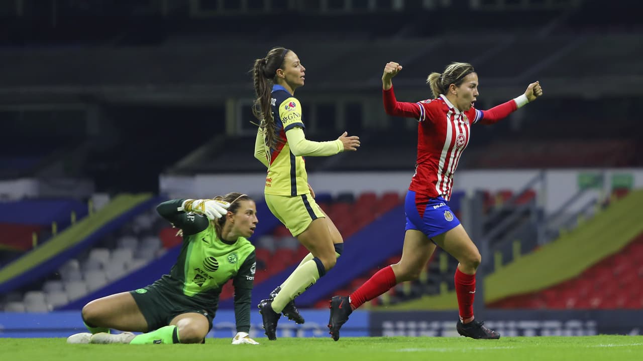 La histórica delantera de Chivas marcó dos tantos y Castillo cerró la goleada del Rebaño femenil sobre las Águilas en el Azteca.