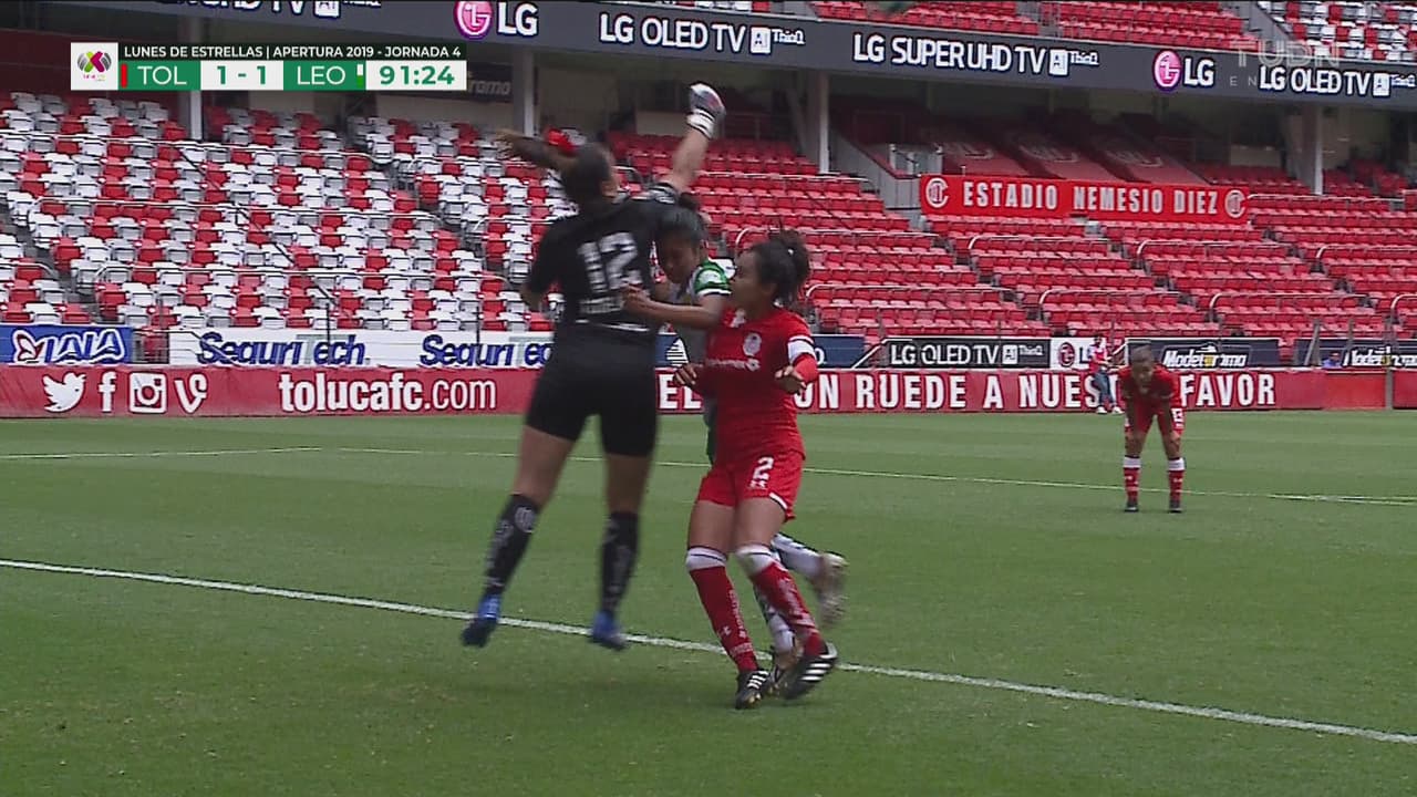 Tras una jugada polémica en el área, sobre la jugadora leonesa, la pelota terminó en favor del Toluca.