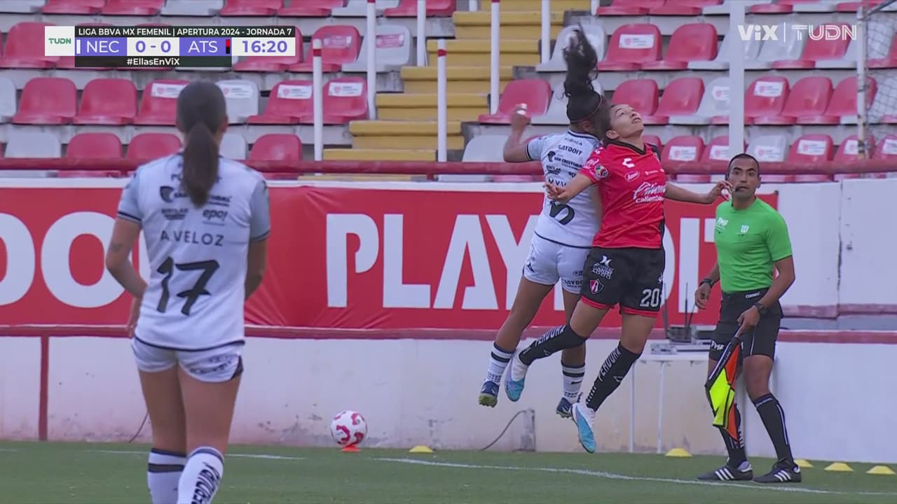 Mientras es balón se encontraba por los aires, las futbolistas de ambas escuadras se encontraron de cabeza y tuvieron que ser atendidas.