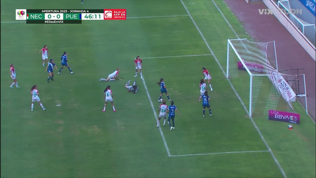 Tiro de esquina de Ivonne Najar es rechazada por la zaga de Necaxa y en la contra, no pudieron concretar el gol.