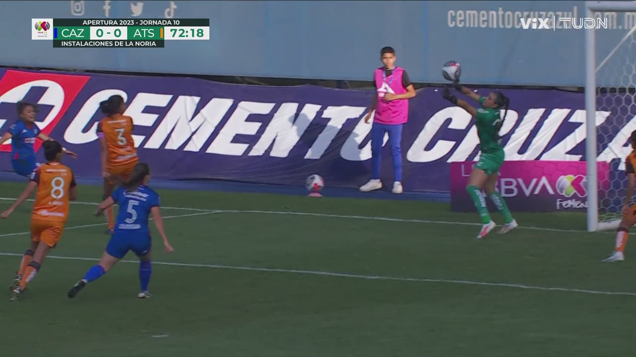 Centro de Norma Palafox a segundo poste a la que se lanzó Meghan a la que no llegó y que tomó Renata Huerta disparando pero fue atajado.