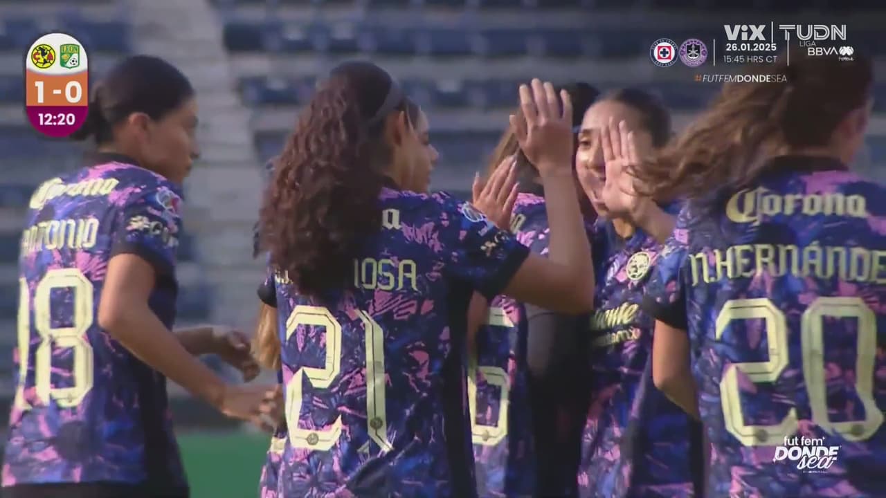 Segunda llegada de peligro de las Águilas y esta termina en gol. Aylin Aviléz remata de cabeza y en el contra remate llega la delantera para el 1-0.