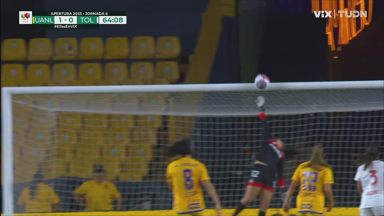 Buen remate por parte de Belén Cruz a la portería endiablada que termina estrellándose y perdonando a Toluca.