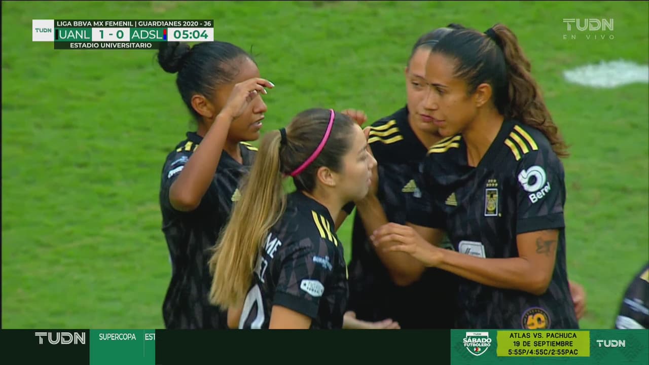 La número 10 de las felinas aprovechó la buena jugada de su compañera para abrir el marcador sobre el Atlético San Luis.