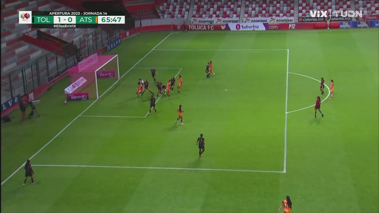 Karla desaprovechó el rechace de balón de Kayla Thmpson tras el tiro de esquina, perdonando a Toluca.