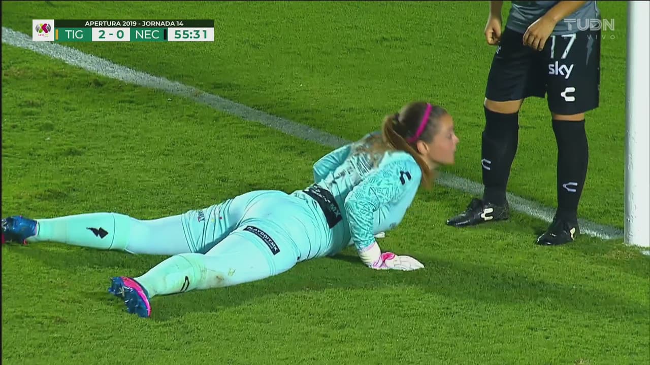 La portera del Necaxa se transforma en la figura del juego. Esta vez le ataja cabezazo a Blanca Solís.