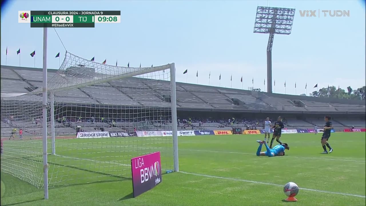 Daniela Espinosa saca zurdazo en jugada que pudo haber dado más con el perfecto pase que le ponen, pero la cabeña se precipita.
