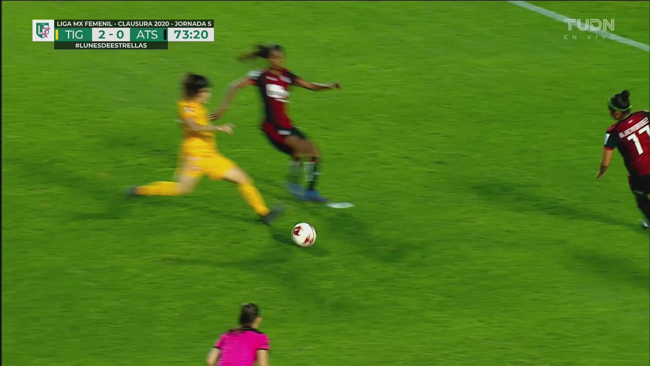 Natalia recibió el balón en el centro del área y sacó un remate de derecha que pasó por encima del arco.
