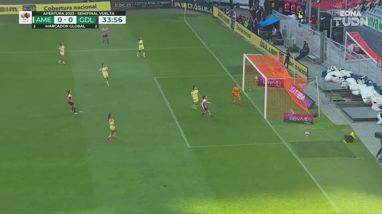 La defensa azulcrema falló en su salida y Licha la intentó bombeada a segundo poste del arco de Itzel.