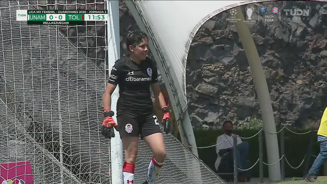 La arquera de Toluca mostró sus extraordinarios reflejos para salvar su arco a los 11 minutos.