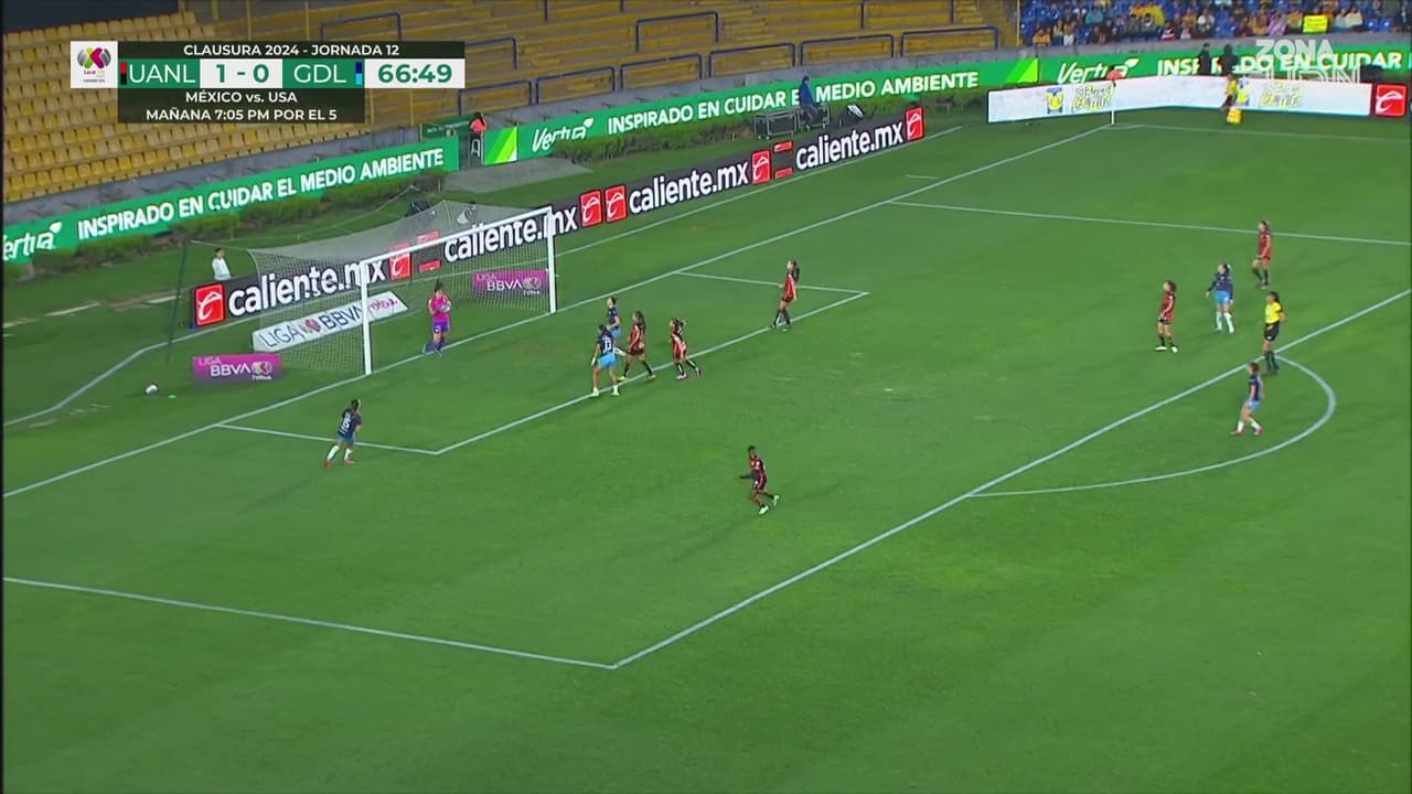 La portera de Tigres hizo una buena salida para evitar el empate en una jugada donde su defensora peinó a portería con peligro.