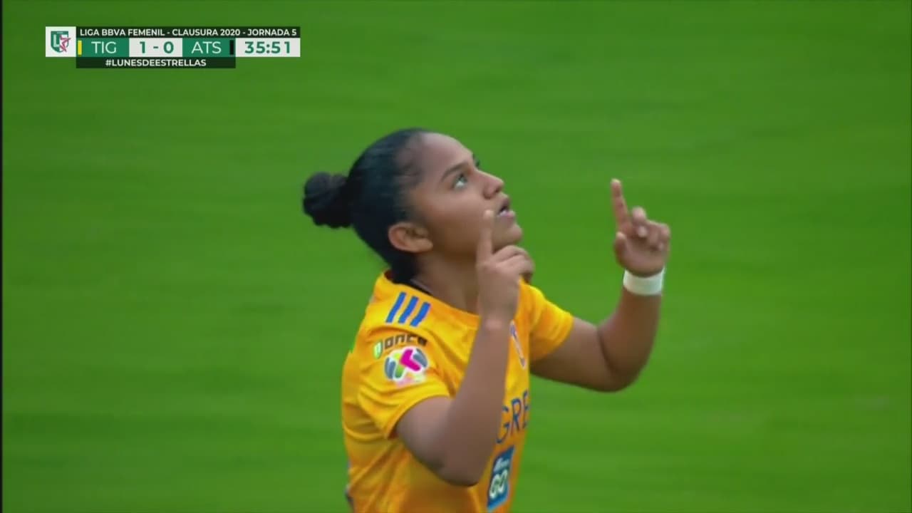 ¡Esta vez no perdonó! Cabezazo de Belén Cruz adelanta 1-0 a Tigres